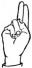 На ћирилици написано ФИЛОТИЈЕ ЧЕРЕНАЦ састоји се из 15 слова [?]. Исписано ћириличном једноручном азбуком за глувонеме: